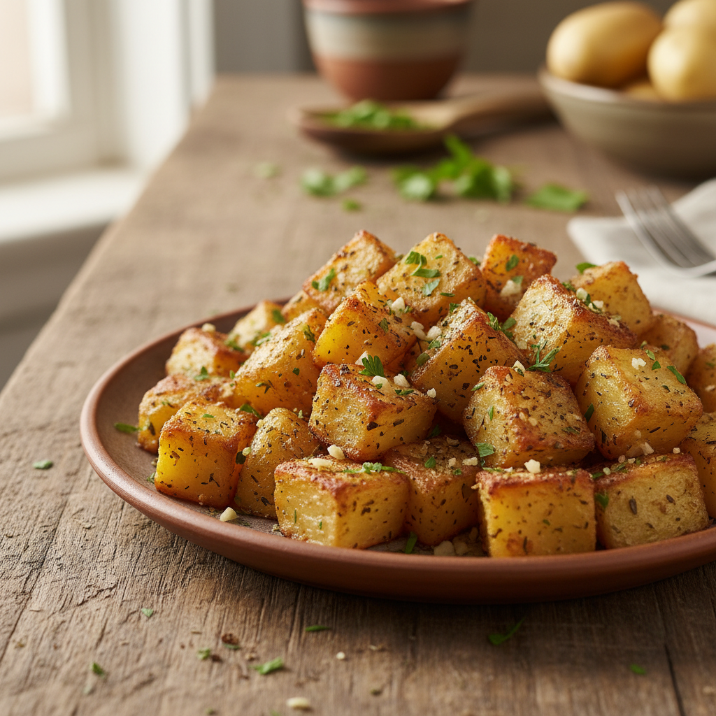 - Viimistlus: Kui kartulid on kuldpruunid ja krõbedad, puista peale ülejäänud parmesan ja pane veel 2–3 minutiks ahju, kuni juust on kergelt sulanud ja karamellistunud. Serveeri kohe värske peterselliga ülepuistatult.