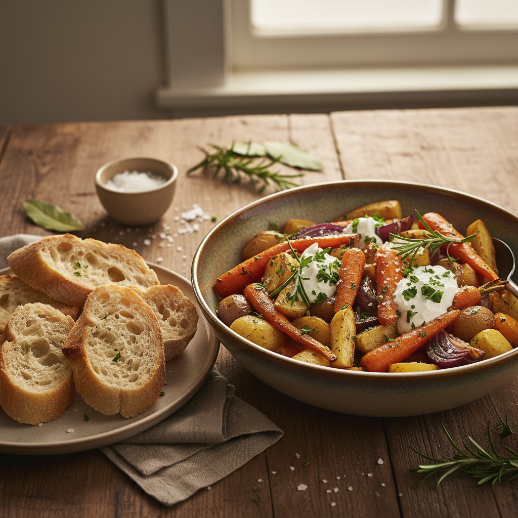- Röstitud juurviljad: Porgandid, spargel või brokoli, mis on kergelt oliiviõliga ahjus röstitud, pakuvad head tekstuuri ja värskust.